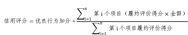 其中,n为纳入评价范围的项目总数,即近3年实际已完成履约评价的项目。市场主体信用评分经优良行为加分后超过100分的,按100分核定。