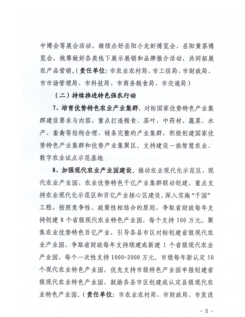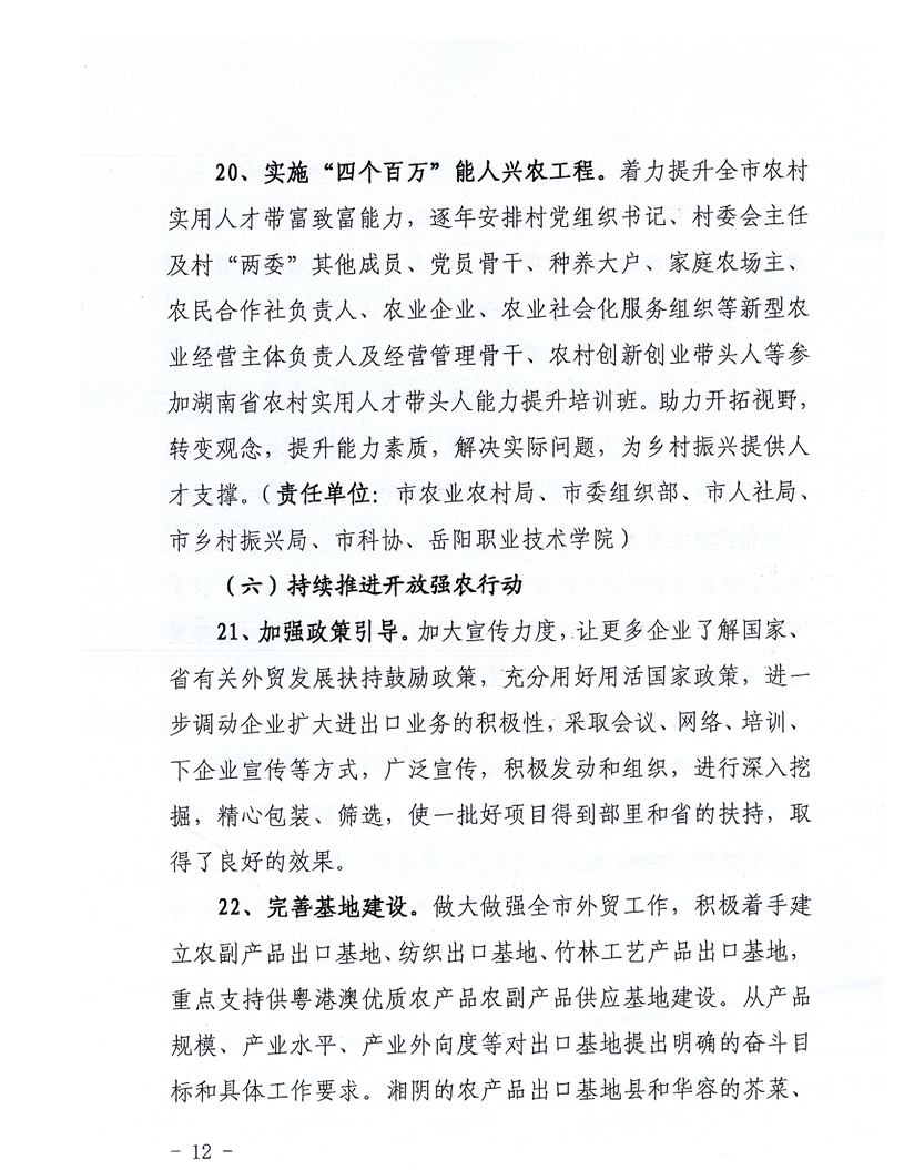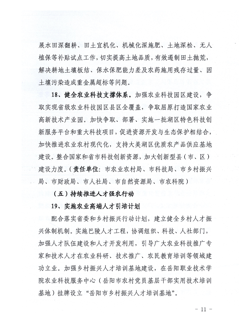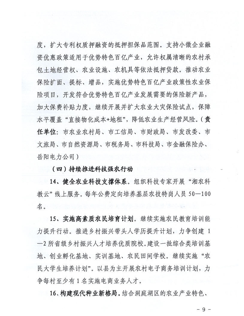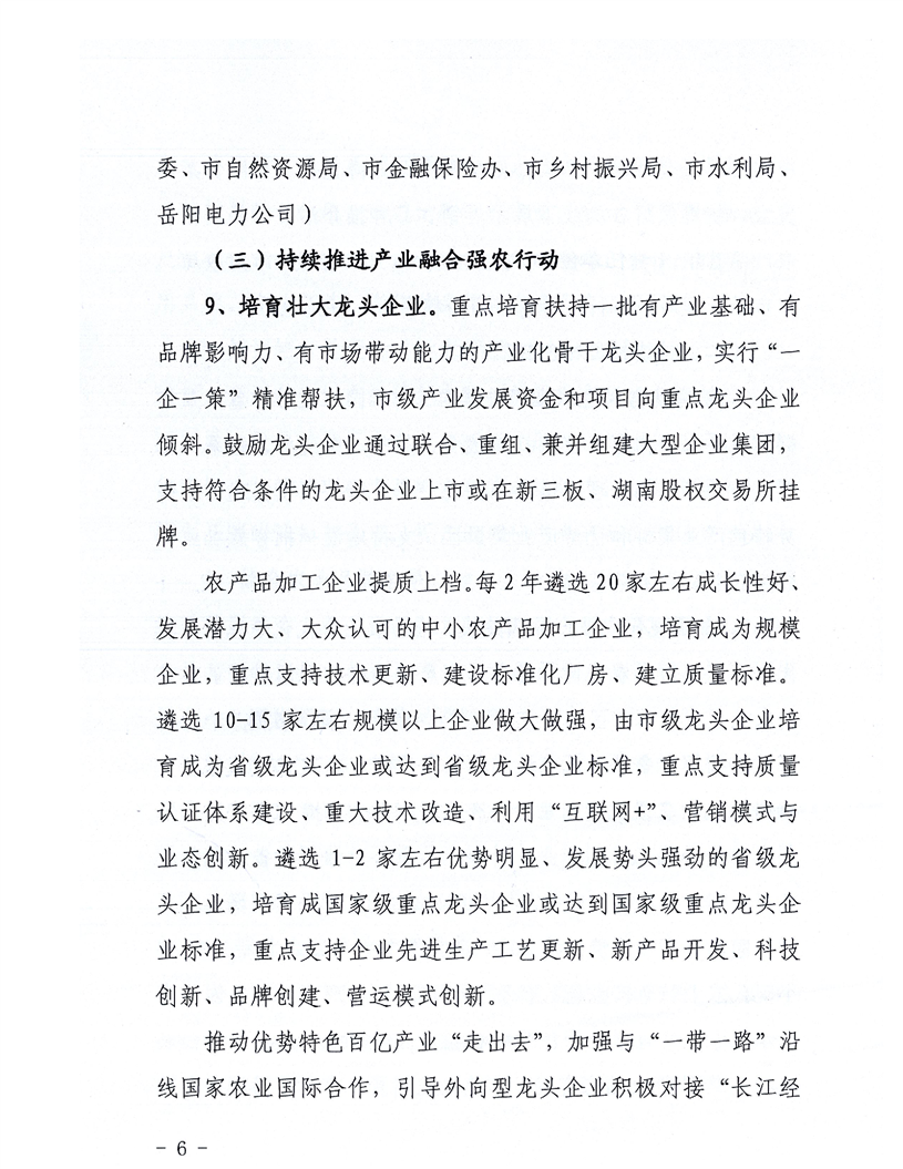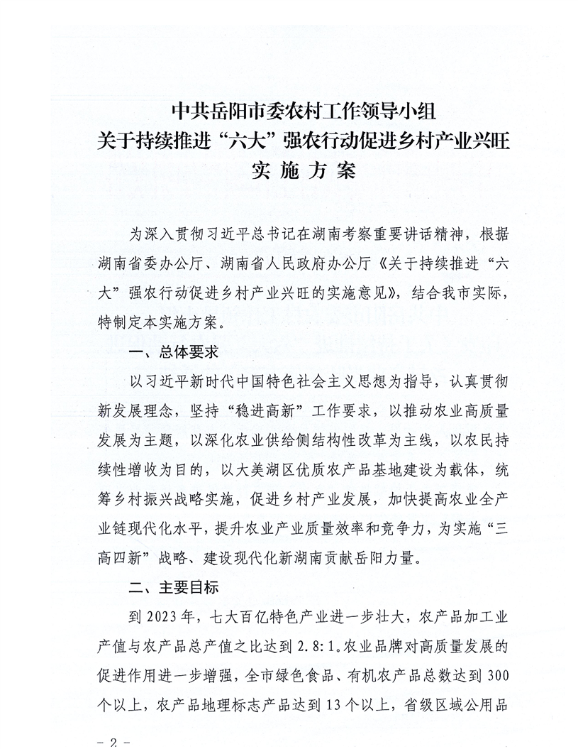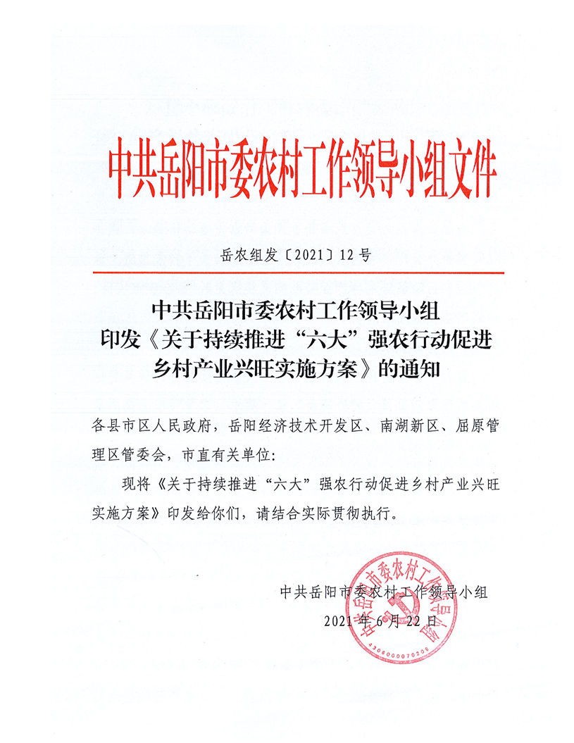 中共岳阳市委农村工作领导小组印发《关于持续推进“六大”强农行动促进乡村产业兴旺实施方案》的通知