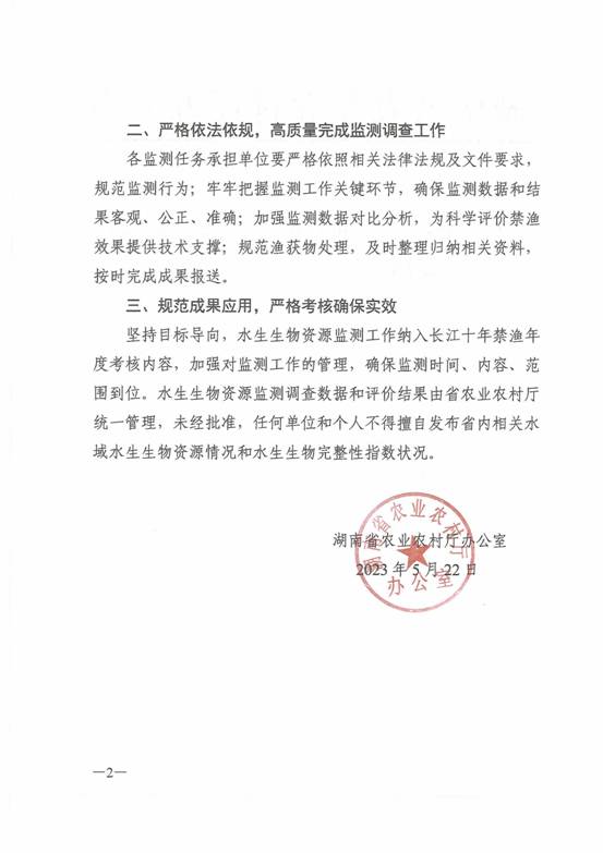 2.关于印发《2023年度湖南省水生生物资源监测调查工作方案》的通知(湘农办函〔2023〕10号)