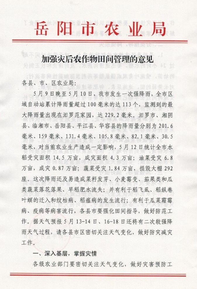 加强灾后农作物田间管理的意见