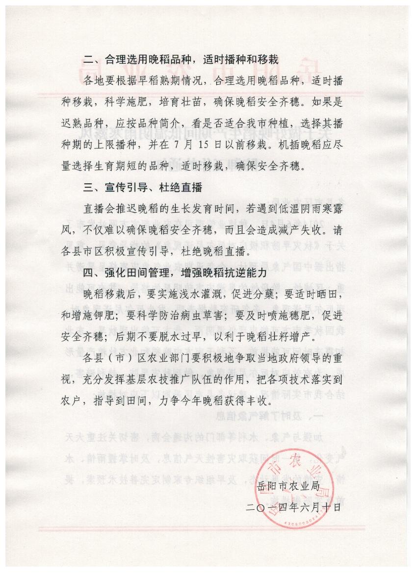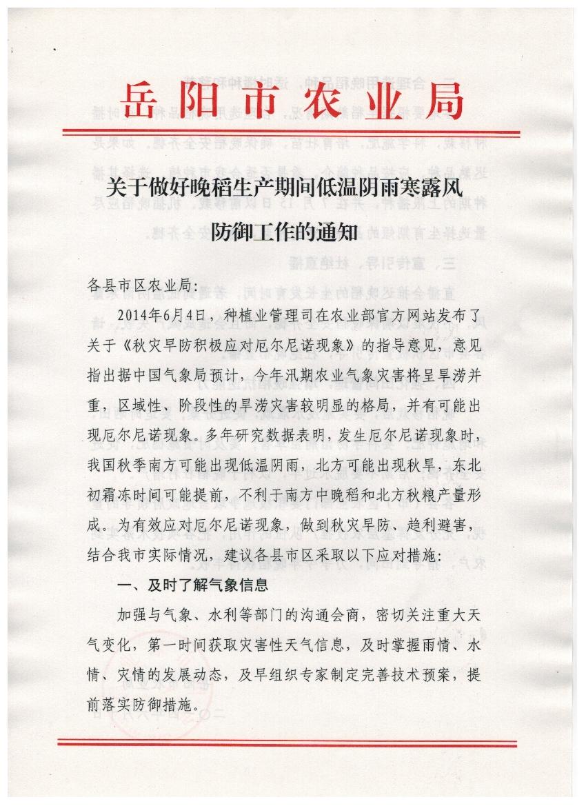 关于做好晚稻生产期间低温阴雨寒露风防御工作的通知