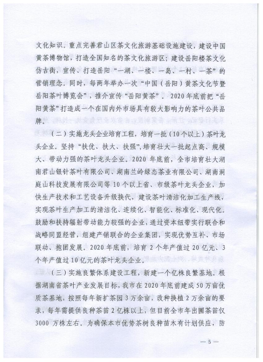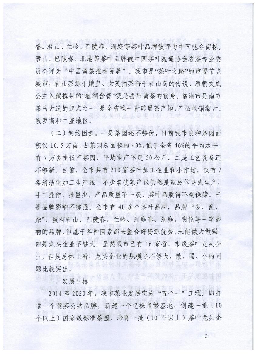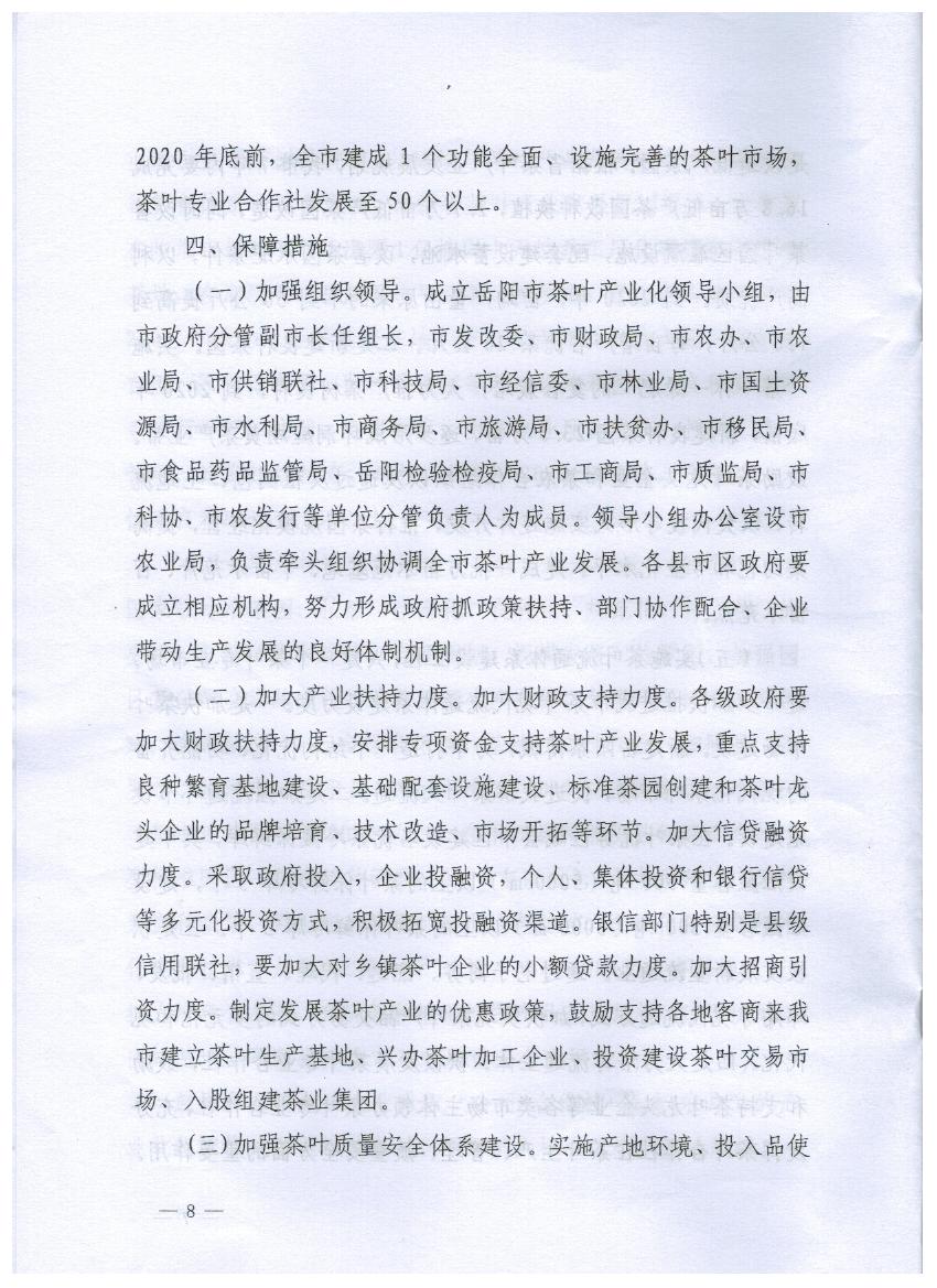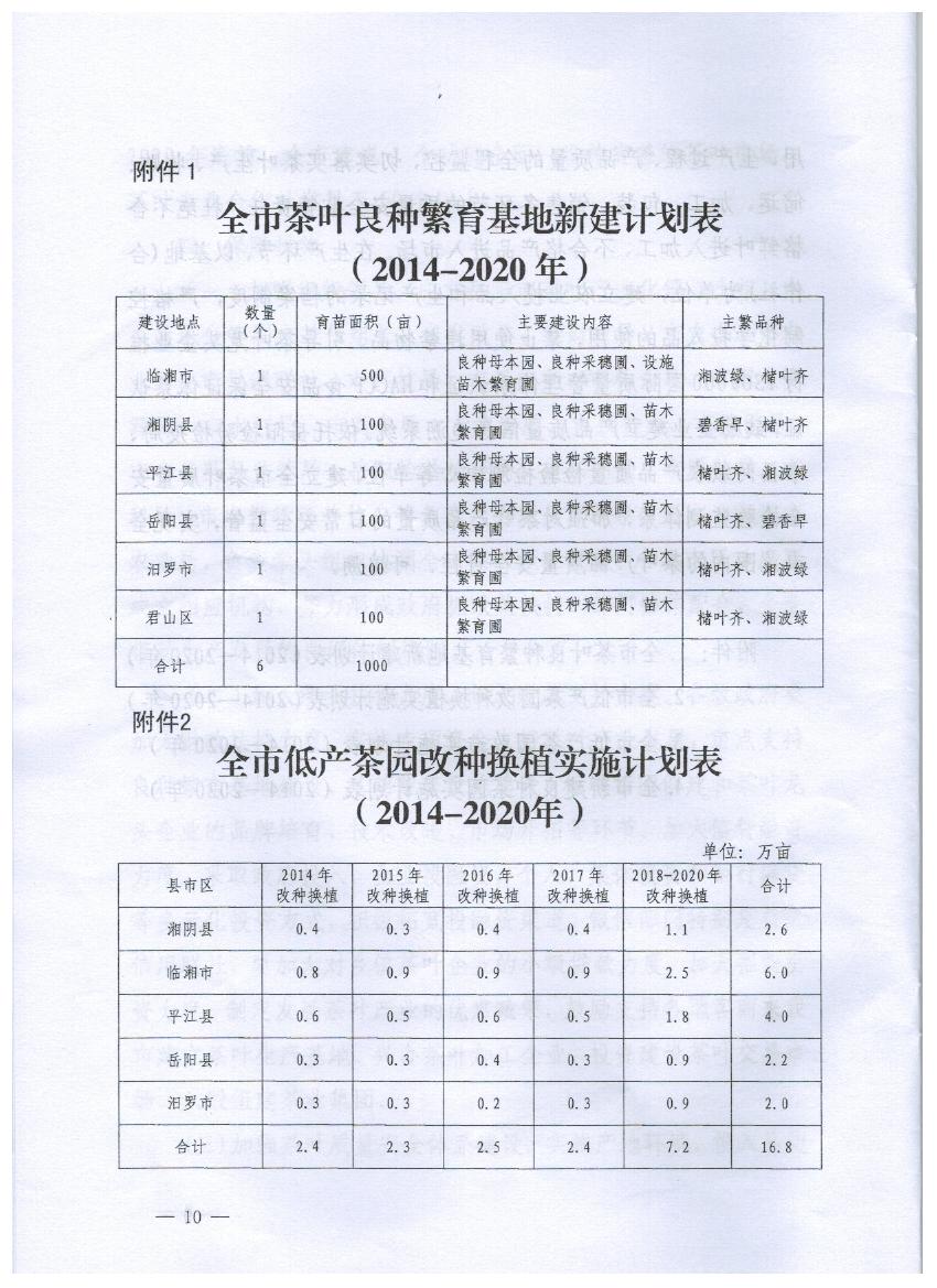 岳阳市人民政府办公室关于印发岳阳市茶叶产业发展规划(2014-2020年)的通知