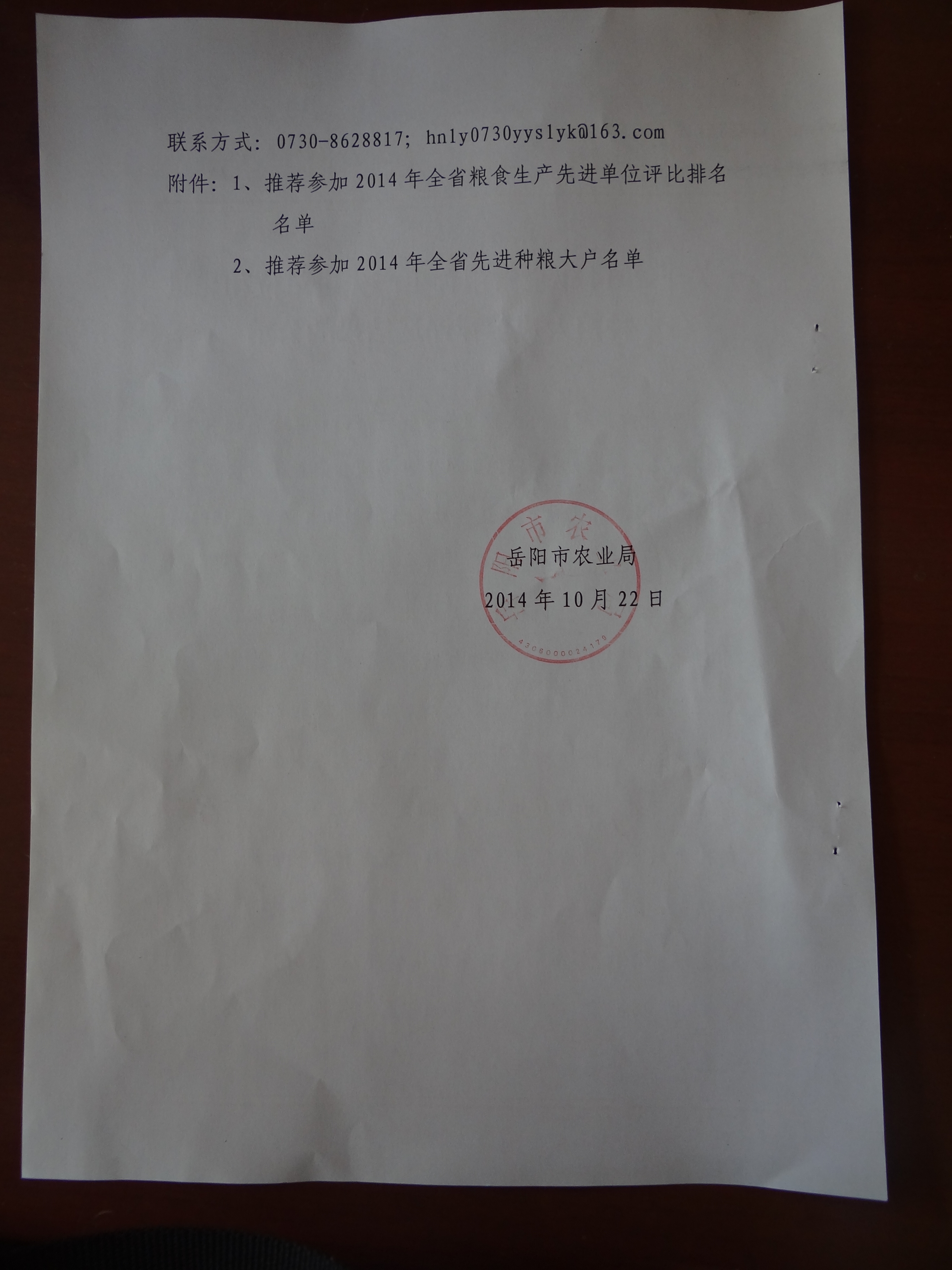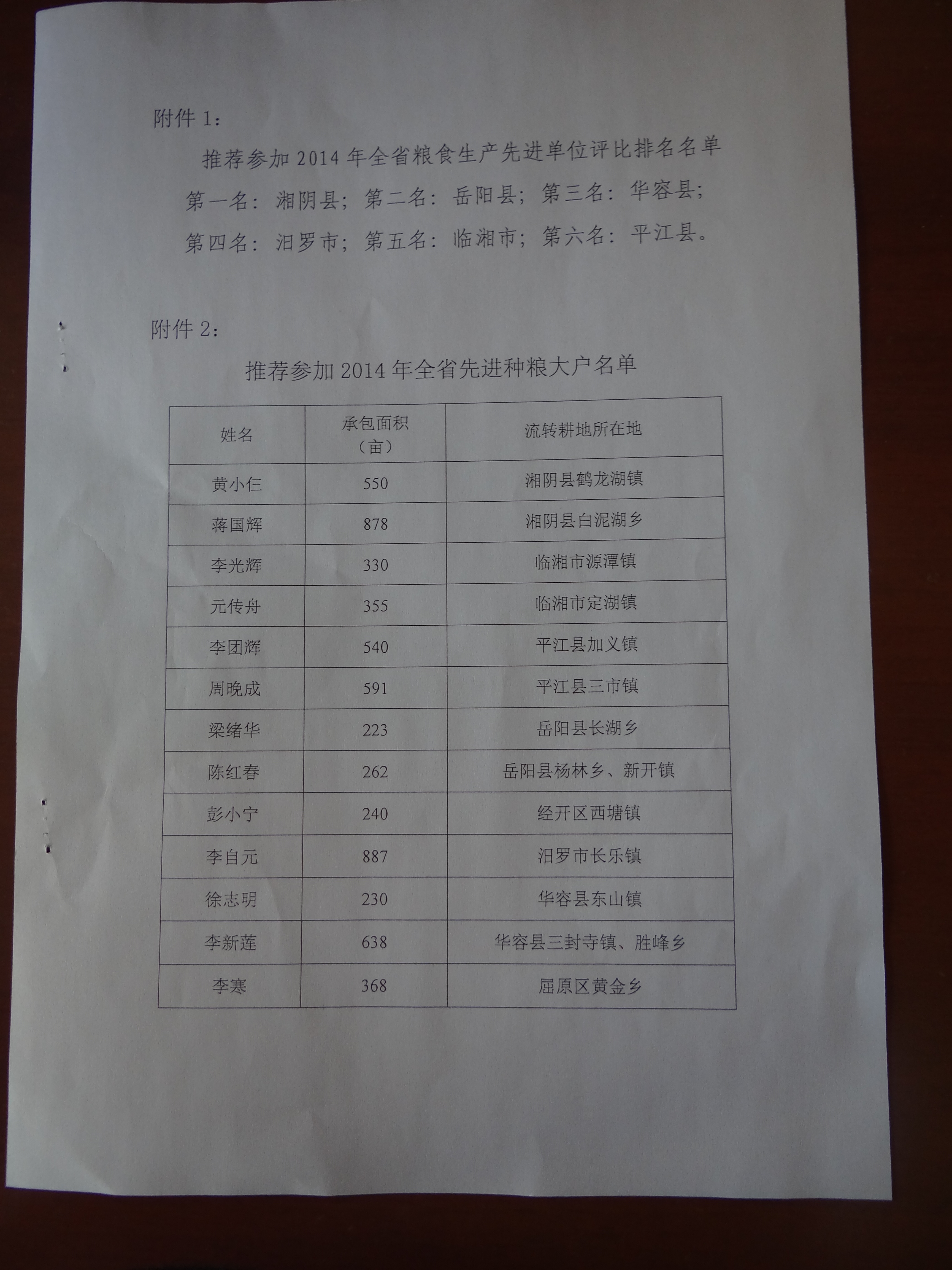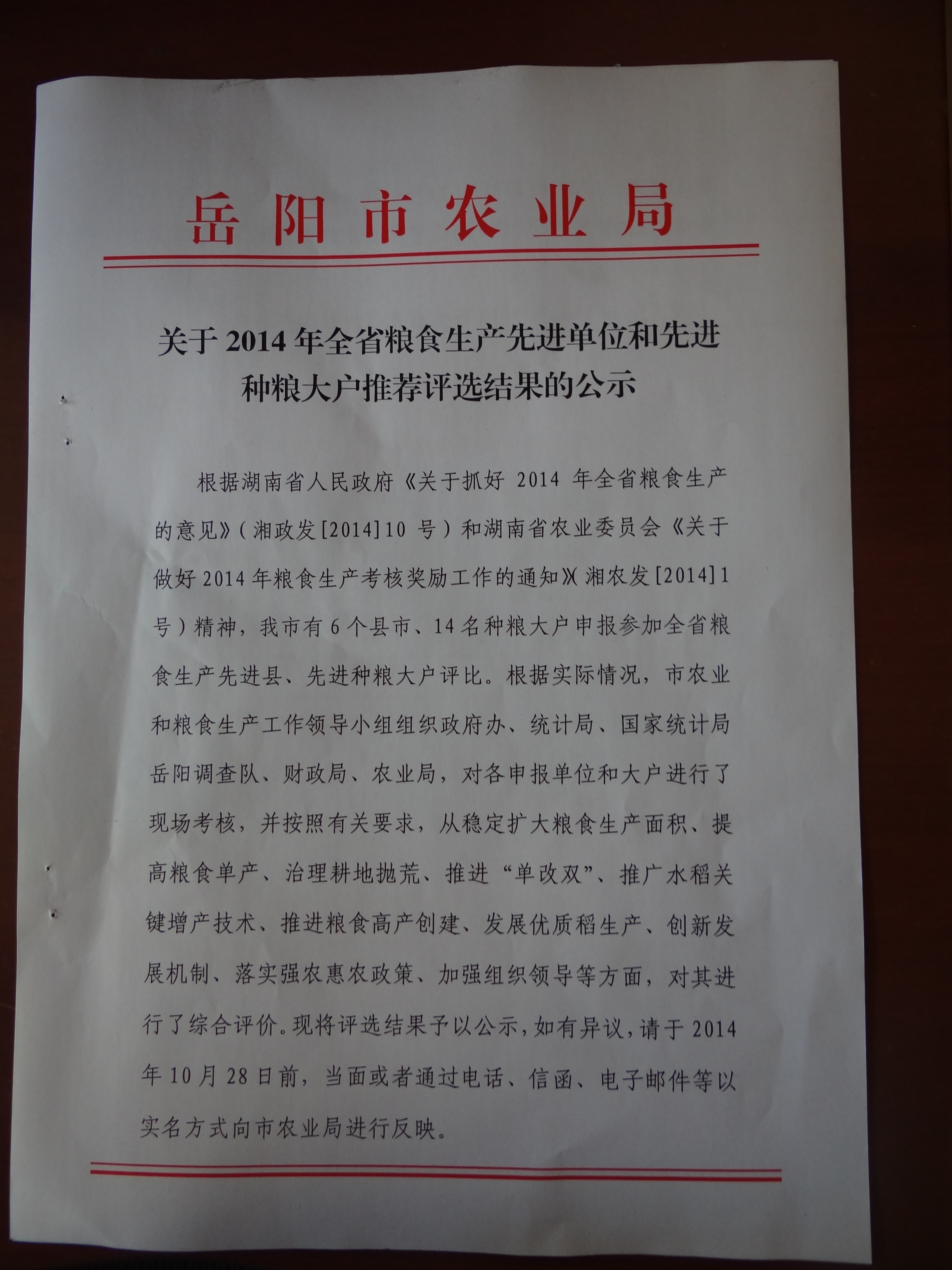 关于2014年全省粮食生产先进单位和先进种粮大户推荐评选结果的公示