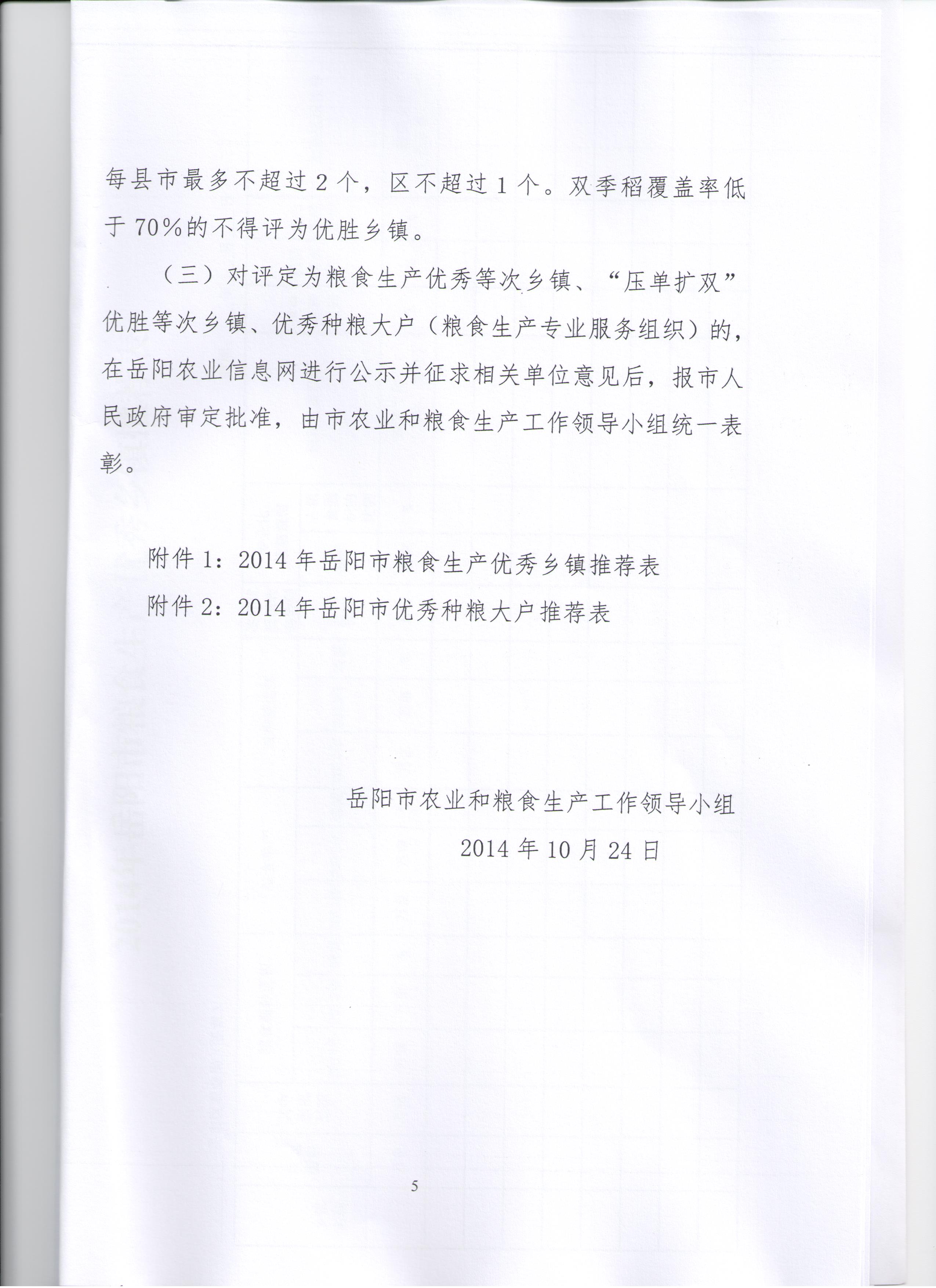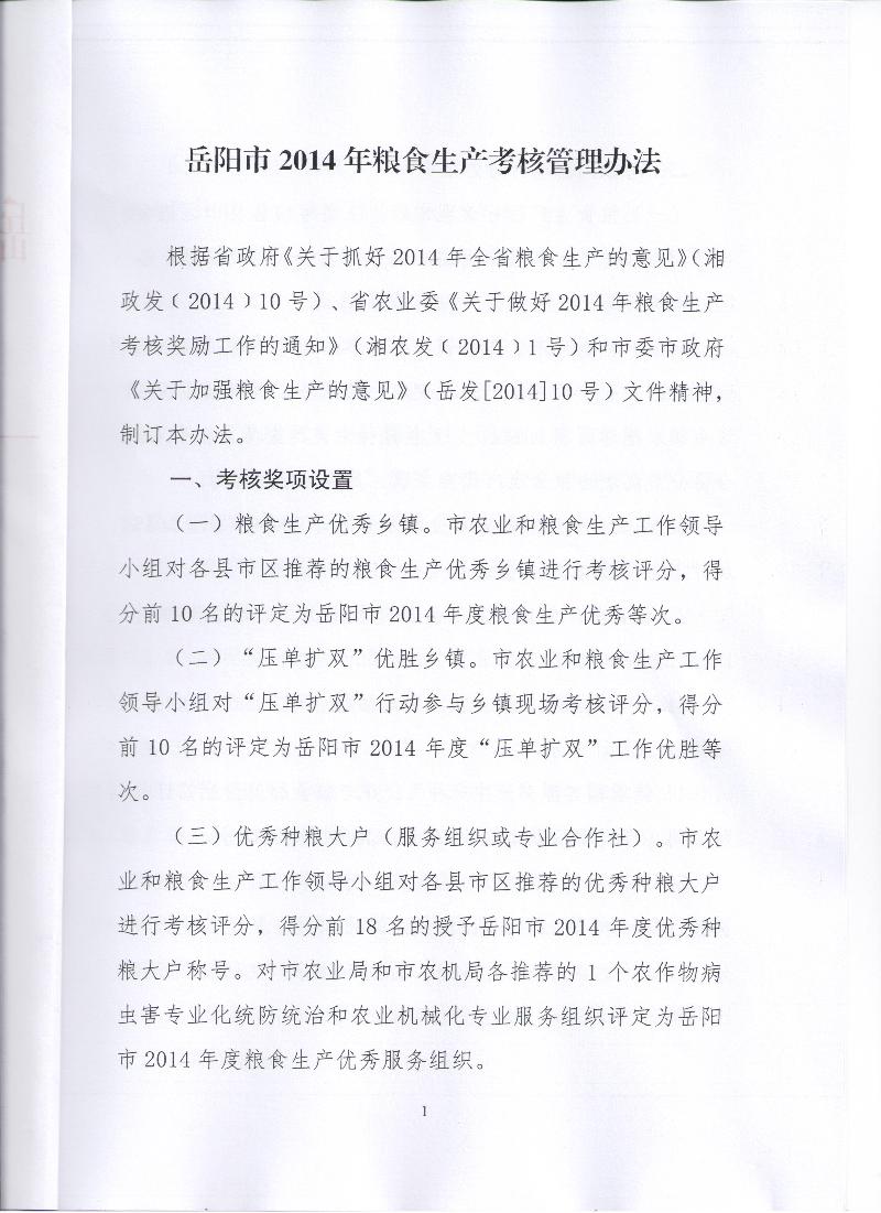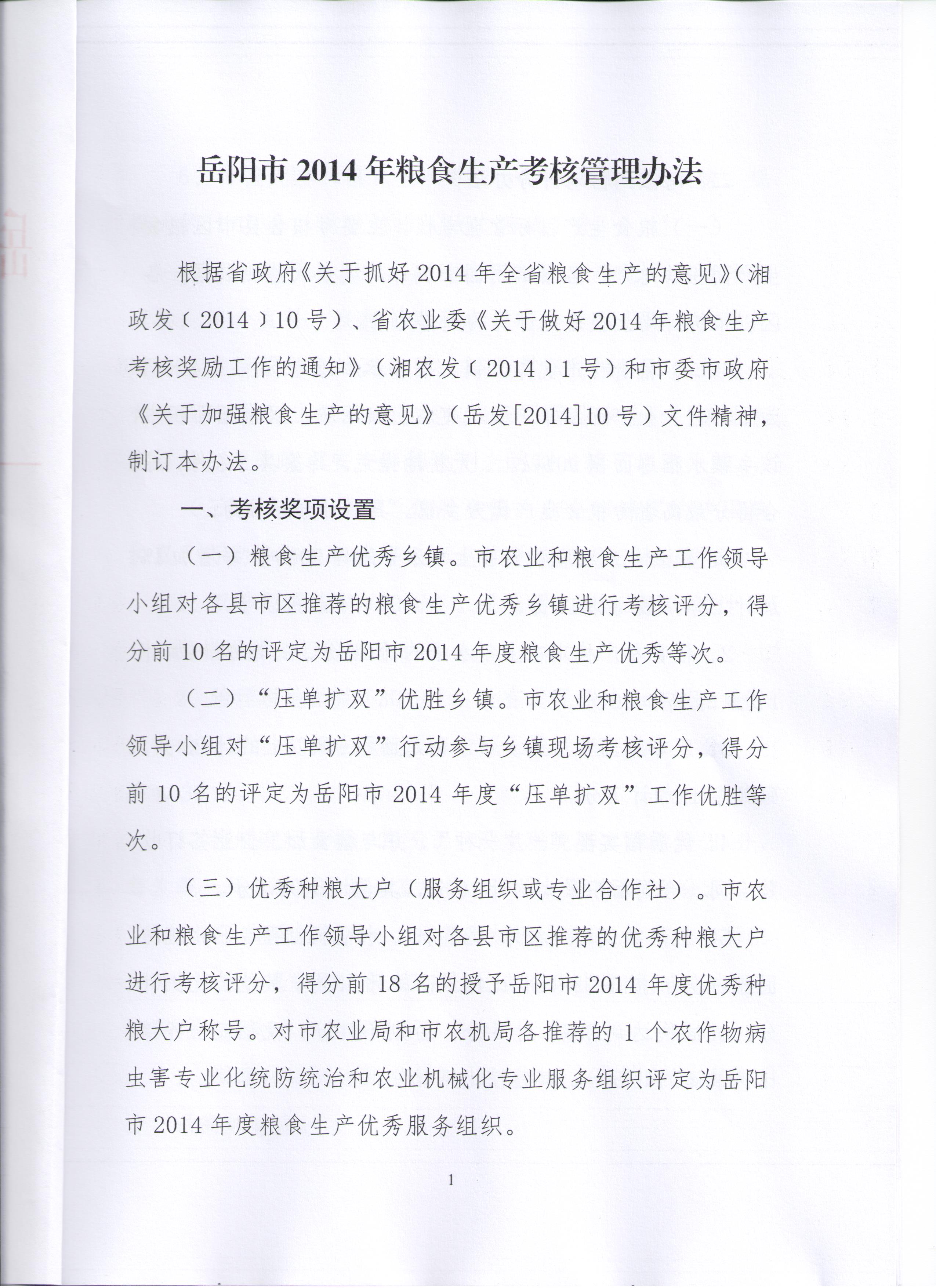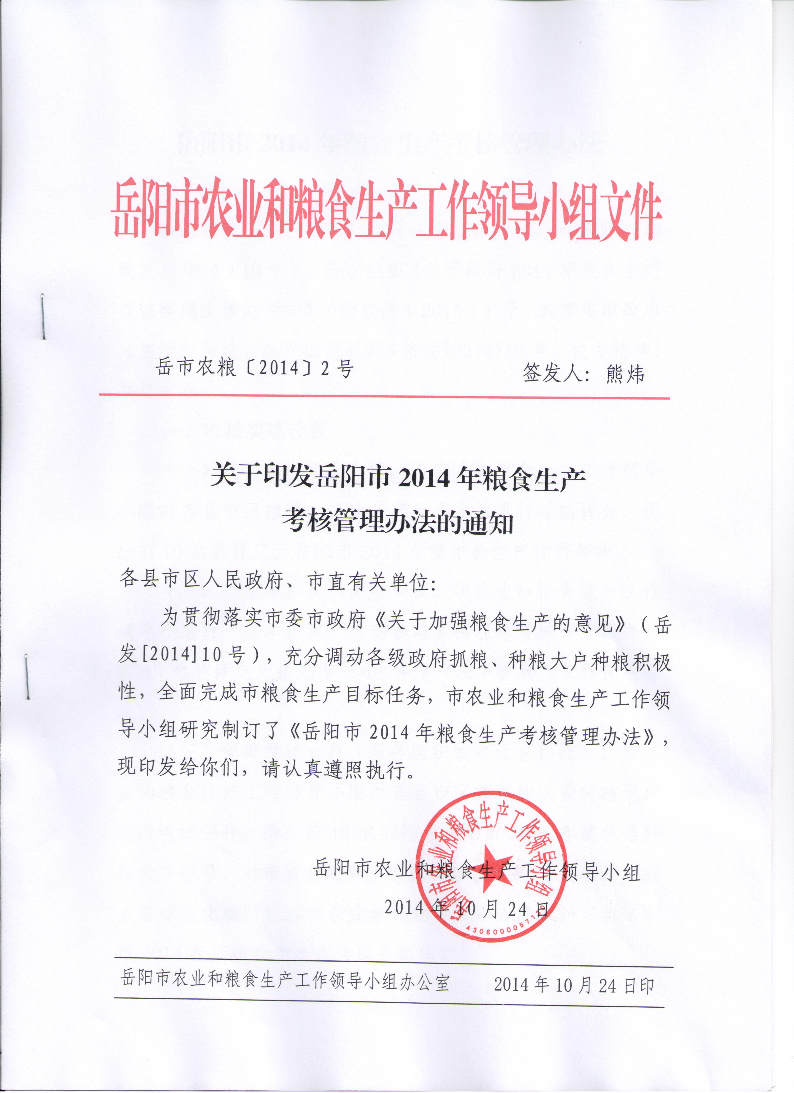 关于印发岳阳市2014年粮食生产考核管理办法的通知