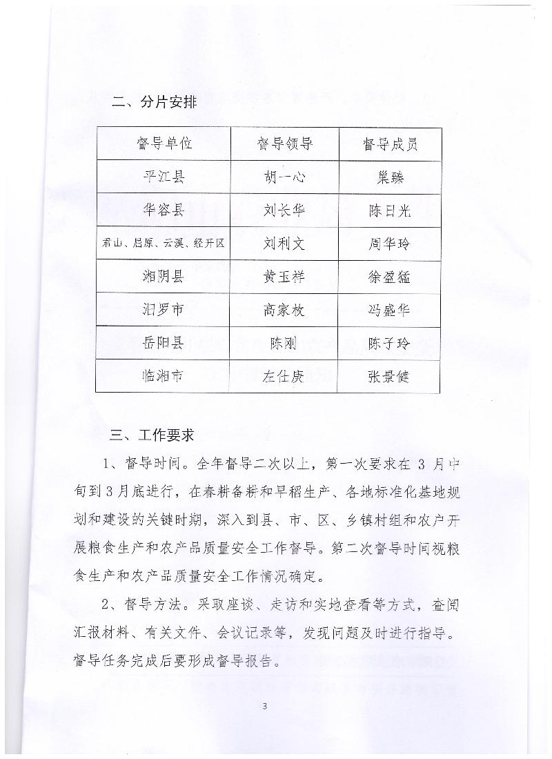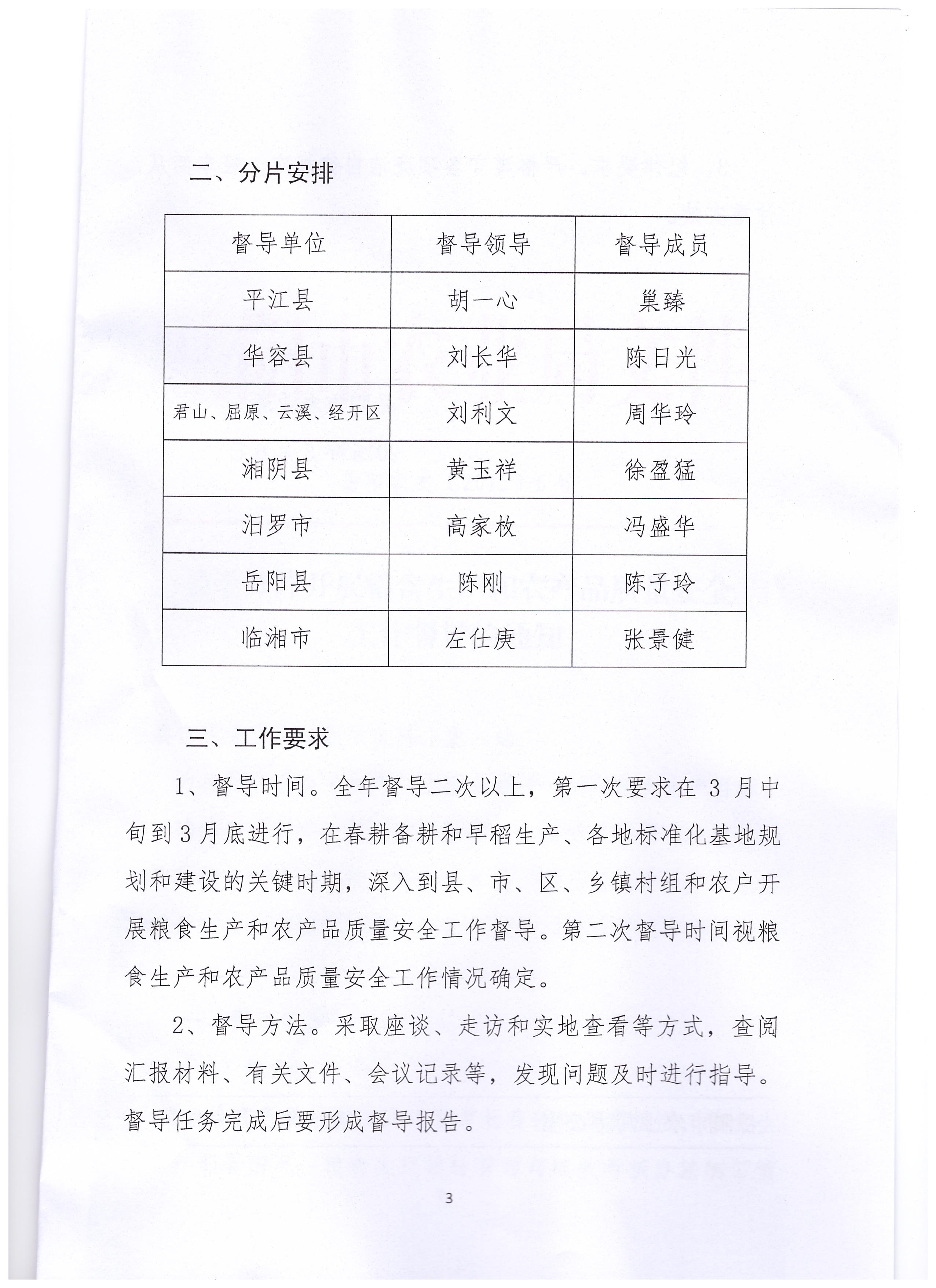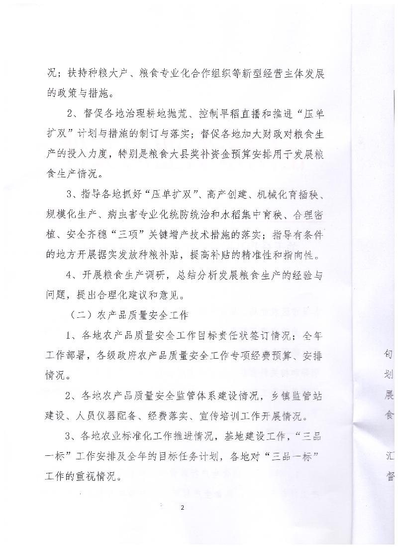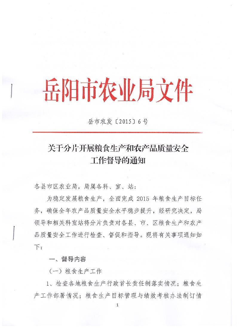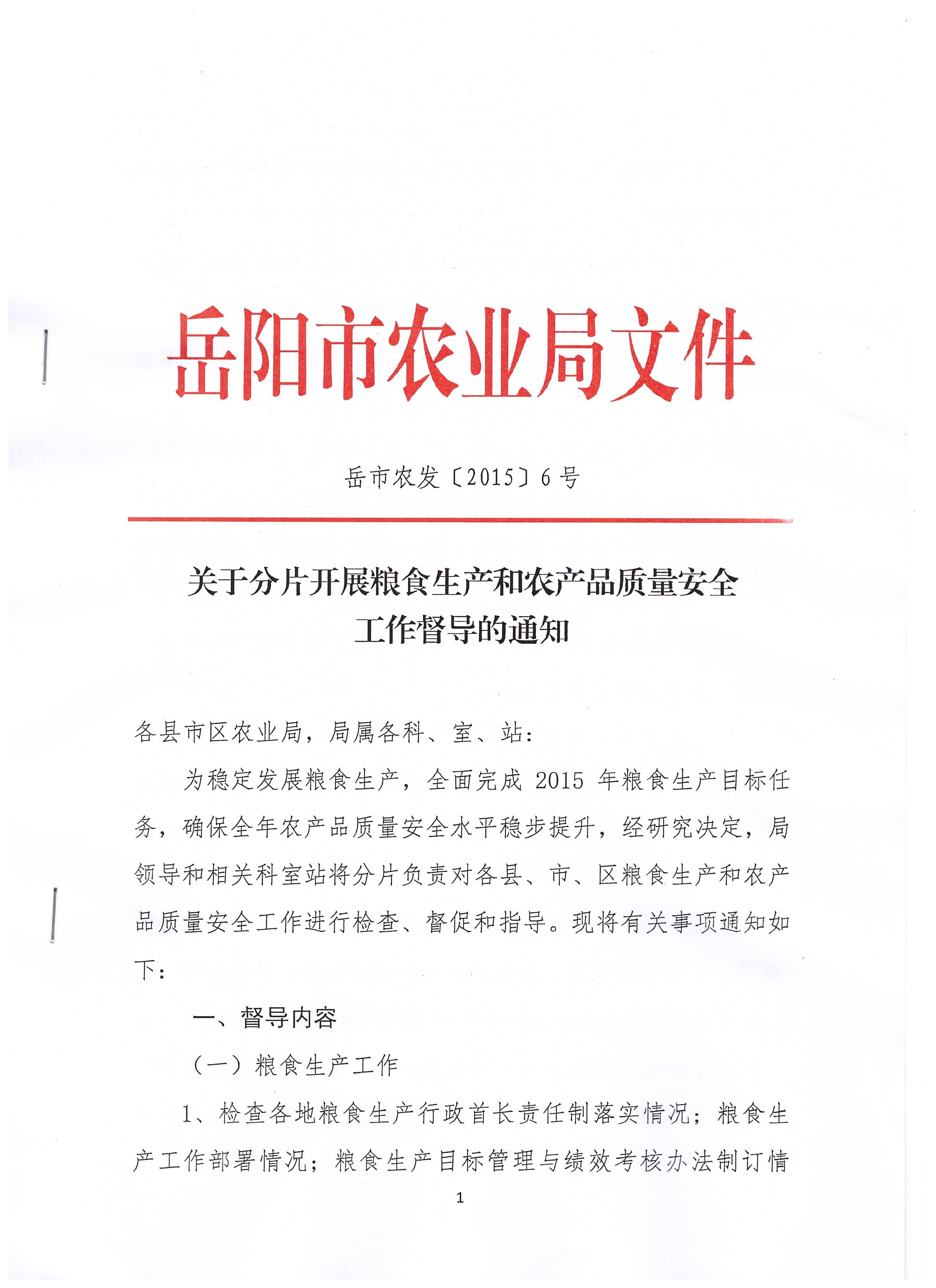 关于分片开展粮食生产和农产品质量安全工作督导的通知