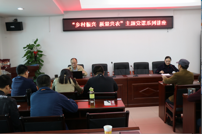 为全面深入贯彻落实党的十九大精神,扎实推进党的先进性建设和学习型党组织建设,不断提高党员干部的理论素养和服务检验检测的能力,岳阳市农业综合检验检测中心结合工作实际开展特色党建活动,举办“乡村振兴,质量兴农”主题系列党课讲座。党课以讲座为主,结合多媒体、现场调研、互动交流,采取集中学习形式。以学习习近平新时代中国特色社会主义思想、提高党性、强化为民服务为基础,紧密联系中心工作实际和干部群众的思想实际,把提高检验检测能力为主要内容,有针对性的开展系列授课。全中心副科级以上干部按部署依次授课,全体党员干部职工参加学习。
