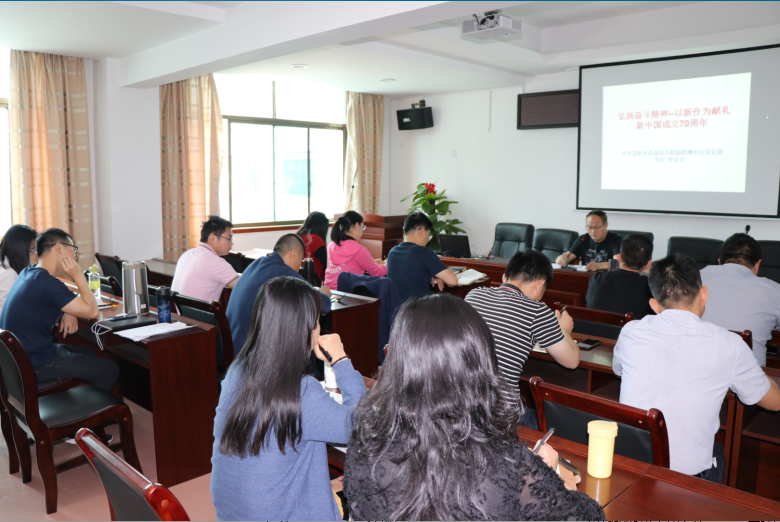 5月20日,中共岳阳市农业综合检验检测中心党支部开展书记讲党课活动。支部书记李安乡首先带领全体干职工共同回顾了我们祖国走过的70周年光辉历程。增强了党员干部的民族自豪感和对党的热爱和信仰,坚定了跟党走的信心。然后深刻解读了在中国特色社会主义进入新时代背景下,农业农村和“三农”干部发展所面临的机遇与挑战。号召全体干职工弘扬奋斗精神,按照党的十九大战略部署,实干担当,善作善成,砥砺前行,以新作为献礼伟大祖国成立70周年。中心支部党员干部备受鼓舞,就祖国成立70周年开展热烈讨论。党员代表发言表示一定顺应时代潮流,抢抓历史机遇,投身广袤田野,奉献青春热血,矢志艰苦奋斗,以高度的责任感、使命感服务三农,回馈社会。以更高水平检验检测工作促进农产品绿色生产、农业转型升级、助力乡村振兴、脱贫攻坚。以新作为献礼新中国成立70周年。