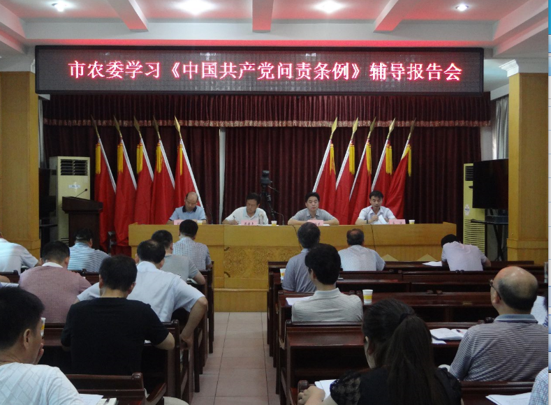8月2日,市农委组织全体干部职工集中学习了《中国共产党问责条例》。委党组成员、纪检组长肖强同志对《中国共产党问责条例》进行了解读宣讲,重点对问责的内容、问责的对象、问责的方式等进行了重点解读和阐述,让我们对新颁布实施的《中国共产党问责条例》有了较为深刻的认识和体会。