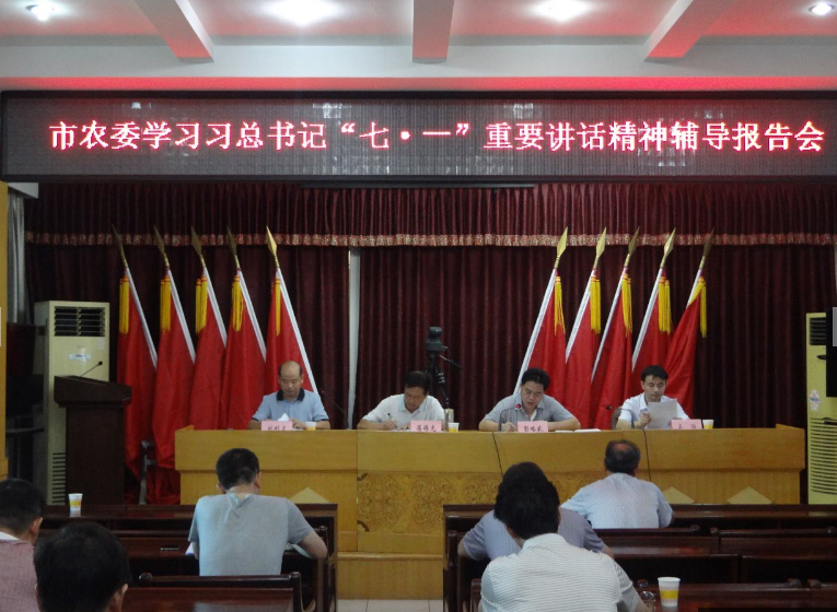 8月2日上午,市农委召开全体干部职工大会,组织集中学习习近平总书记“七·一”重要讲话精神。委党组成员、副主任彭略武同志作了《坚定初心,奋勇前进》的辅导报告。彭略武在辅导报告中全面总结归纳了中国共产党成立95年来带领全国人民作出的“三大历史贡献”,取得的“三次伟大飞跃”,形成的“三大成功经验”,系统阐述了我们党“不忘初心、继续前进”的本质内涵,并对下步如何开展争做“合格党员”提出了具体要求。