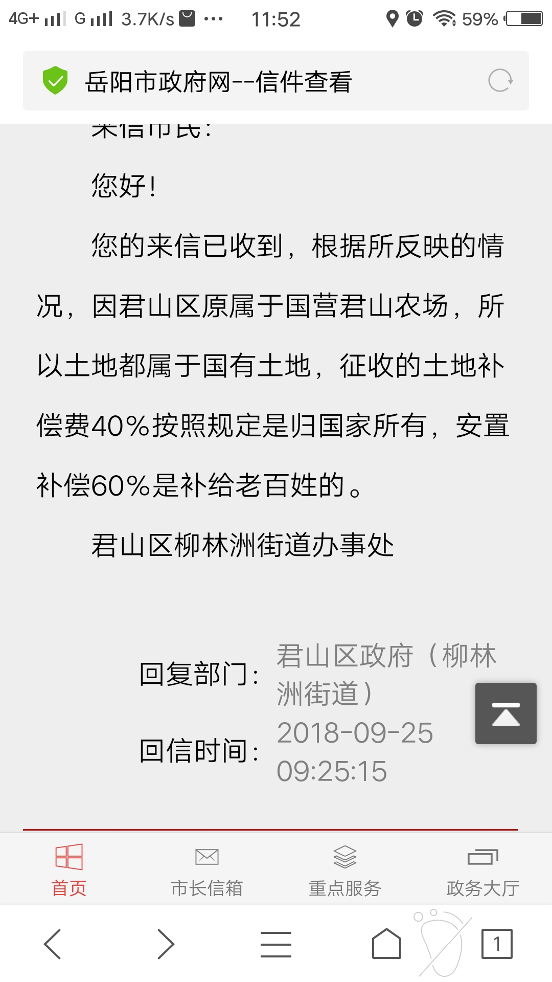 回复部门: 君山区人民政府(柳林洲街道)