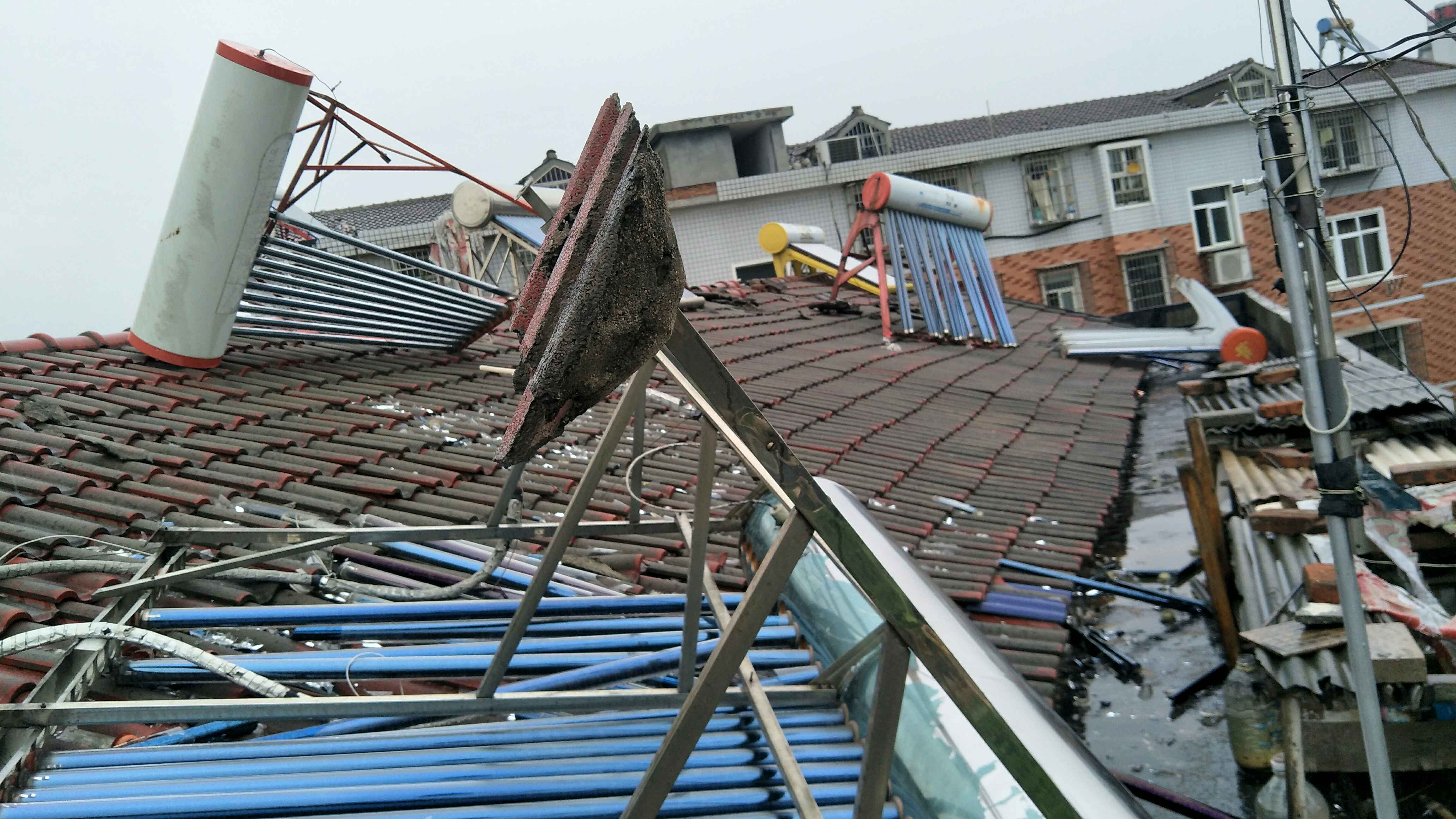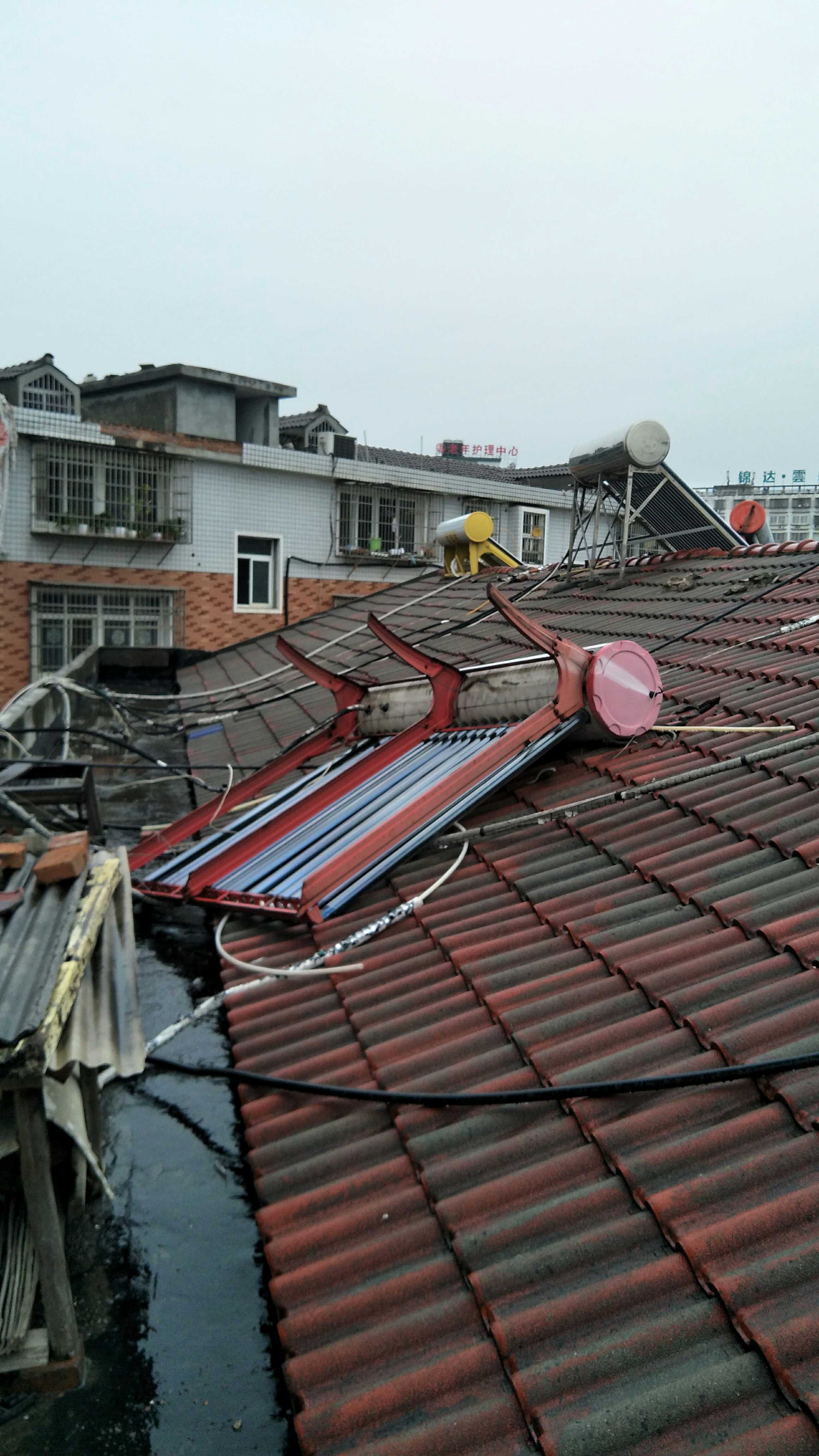 一场大风后,岳阳楼区金庭小区2栋屋顶上的太阳能吹翻了5台,悬挂屋顶,岌岌可危。据悉,被吹翻的太阳能,都是装在屋脊上,且后期少使用,甚至停用了,里面储水不多。风刮起来,连底座拔起,严重威胁了居民的人身安全。请相关部门引起重视,及时处理,制定相关措施,排除高楼安全隐患。