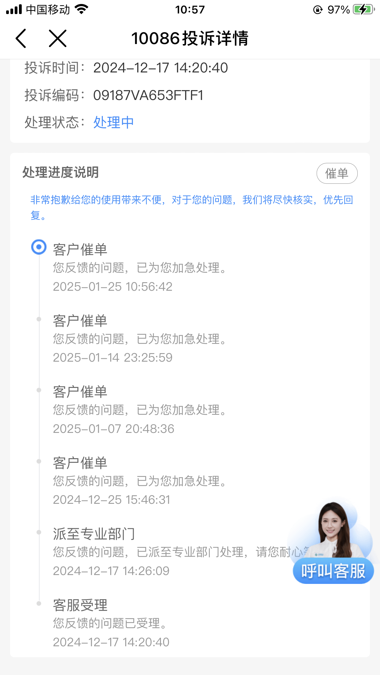 | 内容: | 中国移动诈骗,乱收费,多次打10086没有人处理,反正就是要我等回复三个月了没有回复。也多次催处理、反正就是已帮你催处理。