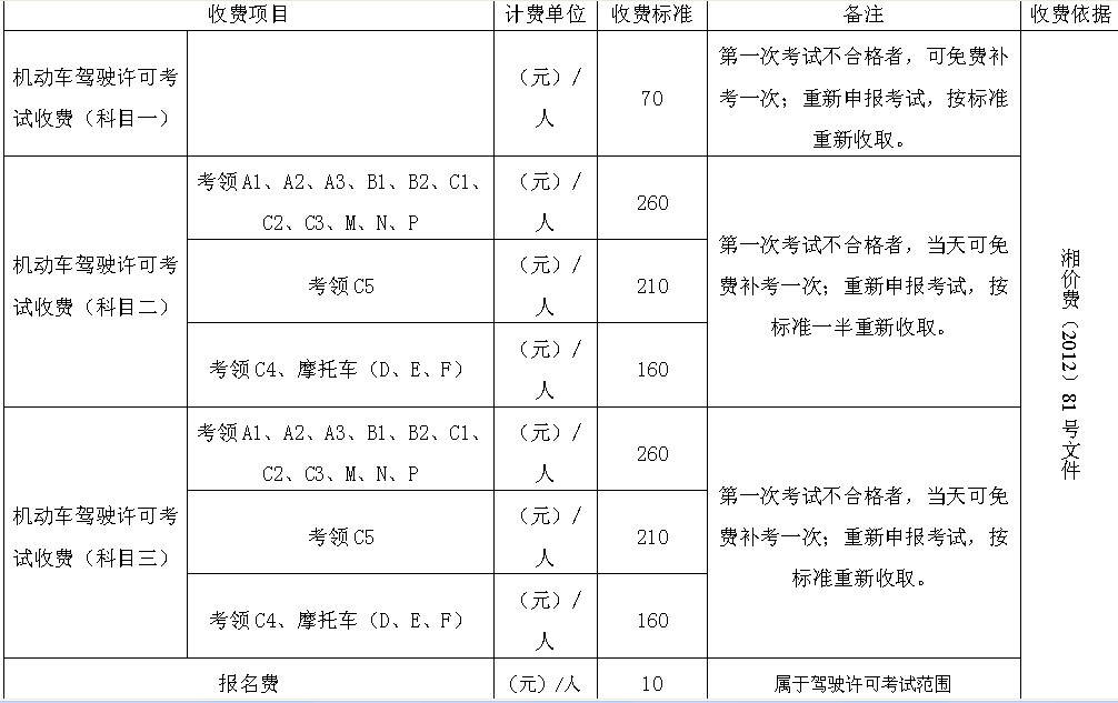 标题: 关于岳阳市驾驶考试收费问题